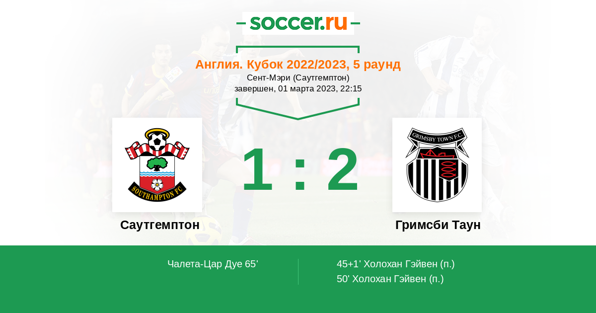 Протокол матча Саутгемптон против Гримсби Таун