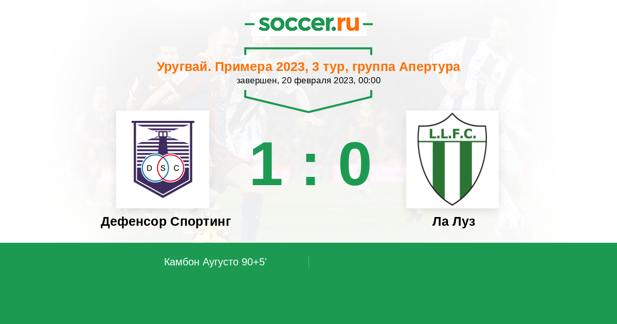 Протокол матча Дефенсор Спортинг против Ла Луз