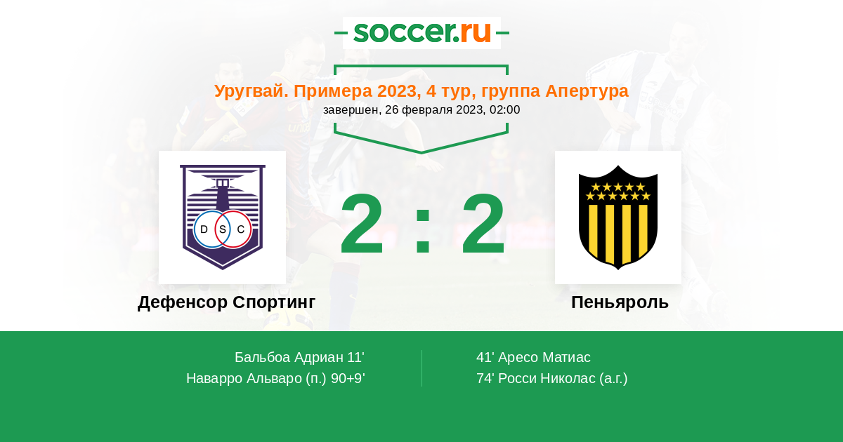 Протокол матча Дефенсор Спортинг против Пеньяроль