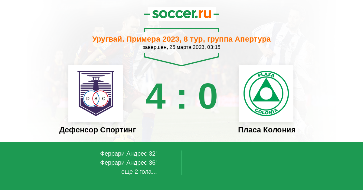 Протокол матча Дефенсор Спортинг против Пласа Колония
