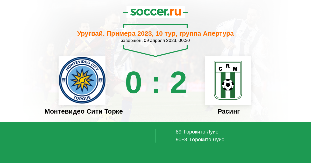 Протокол матча Монтевидео Сити Торке против Расинг