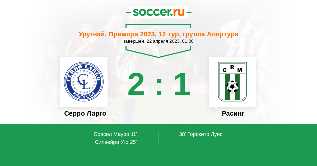 Протокол матча Серро Ларго против Расинг