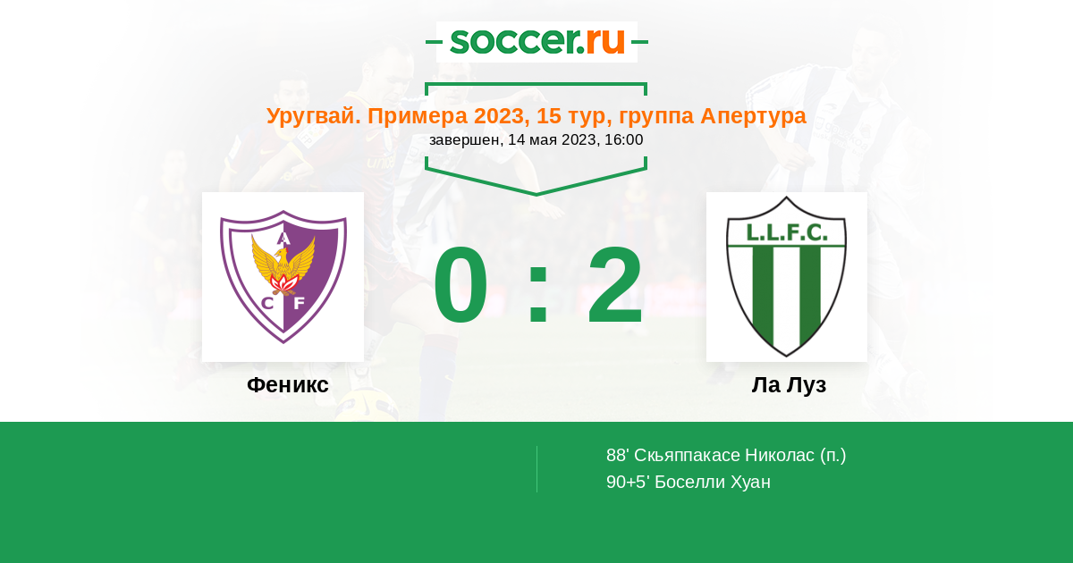 Протокол матча Феникс против Ла Луз