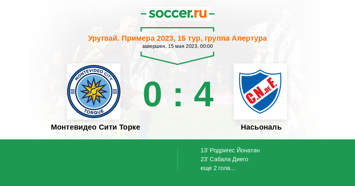 Протокол матча Монтевидео Сити Торке против Насьональ