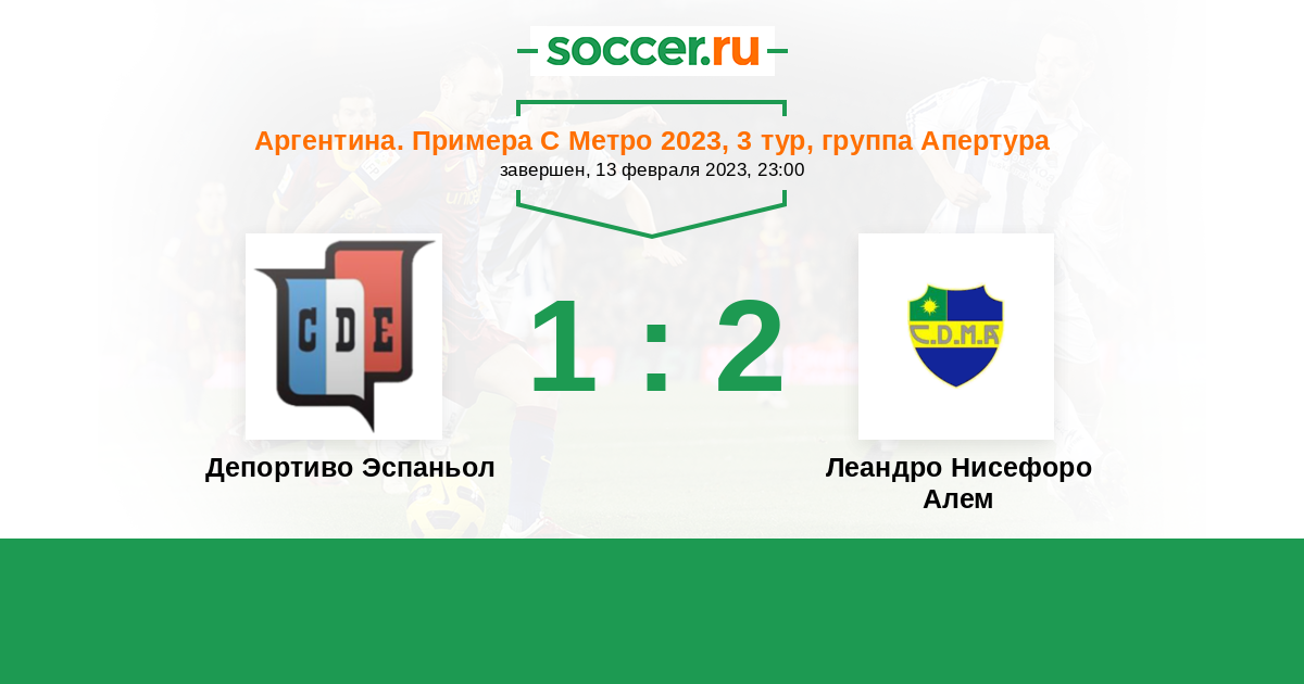 История матча Депортиво Эспаньол против Леандро Нисефоро Алем