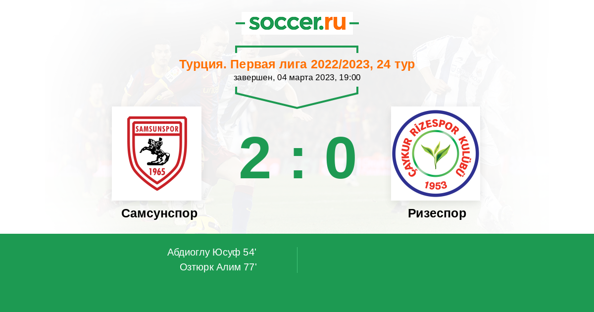 Протокол матча Самсунспор против Ризеспор