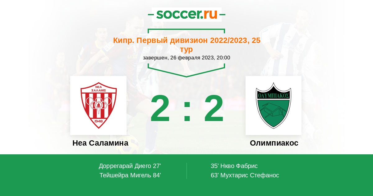 Протокол матча Неа Саламина против Олимпиакос