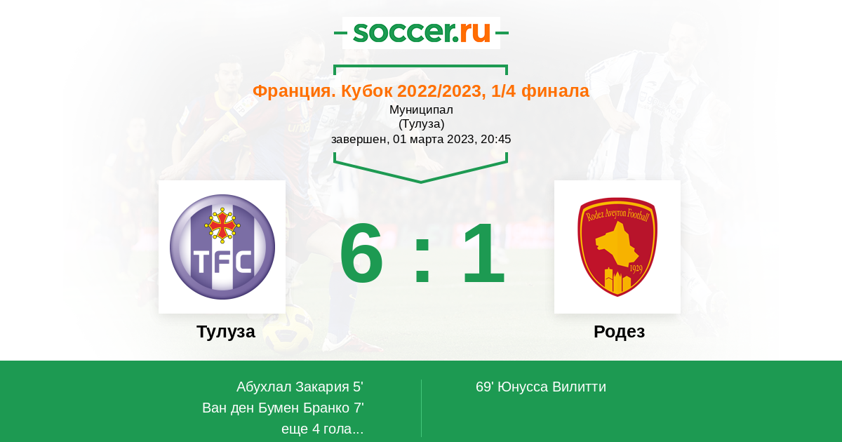 Протокол матча Тулуза против Родез