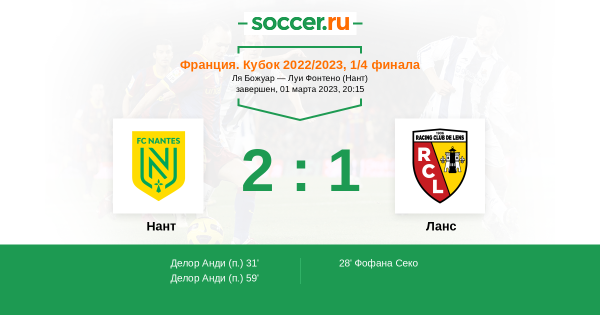 Протокол матча Нант против Ланс