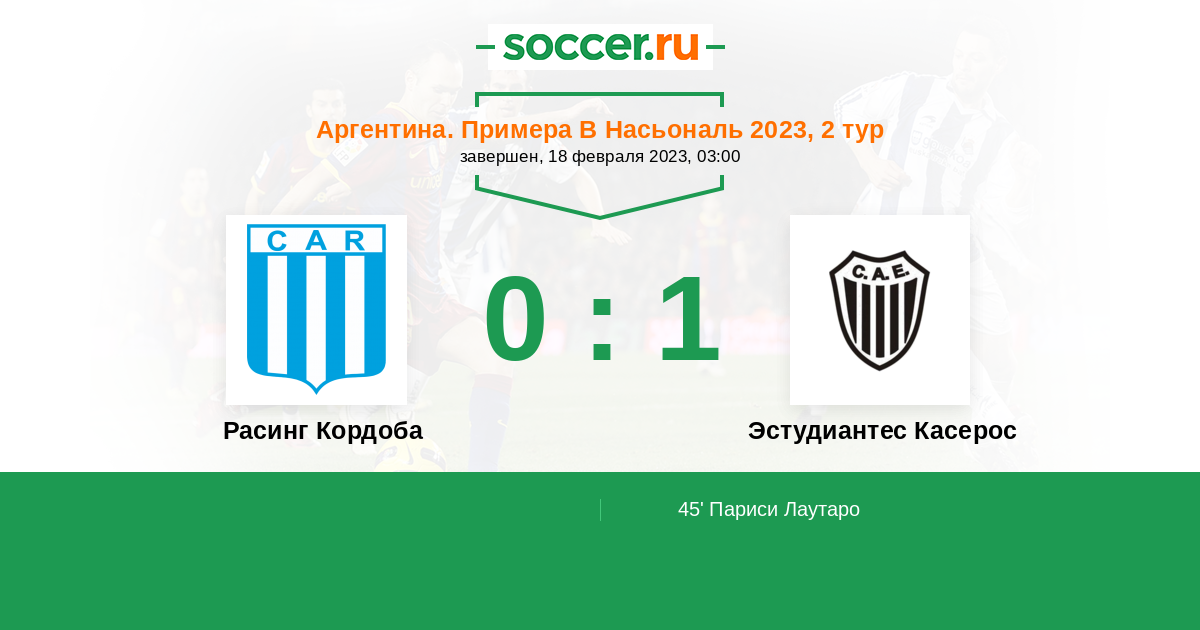 Протокол матча Расинг Кордоба против Эстудиантес Касерос