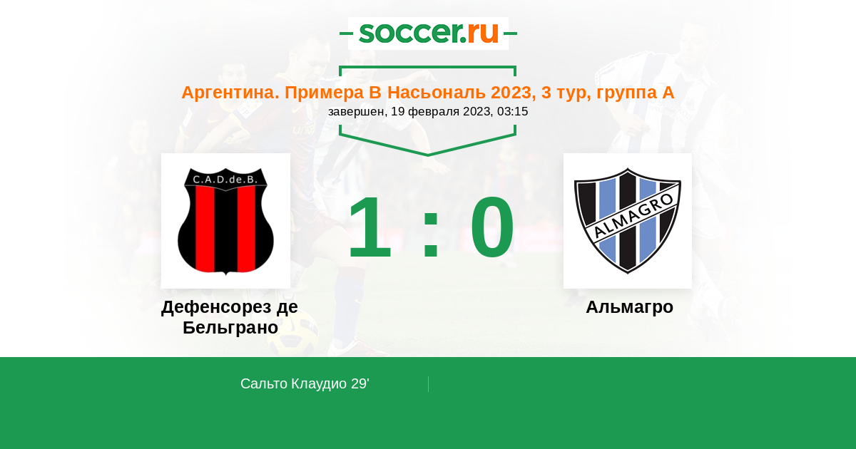 Протокол матча Дефенсорез де Бельграно против Альмагро