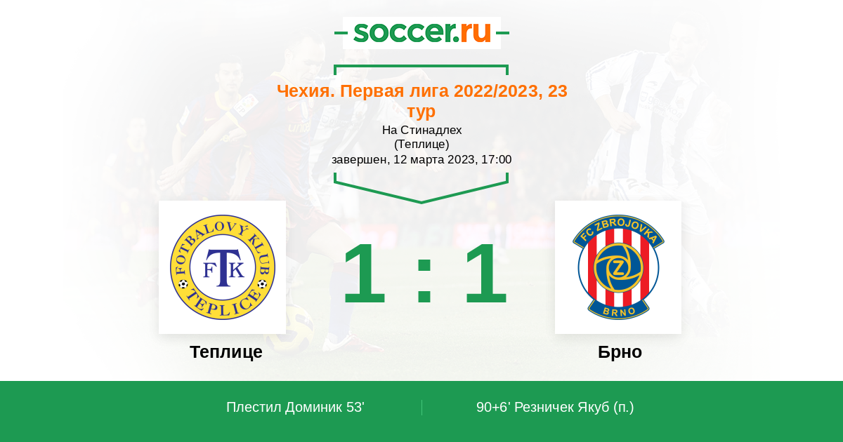 Протокол матча Теплице против Брно