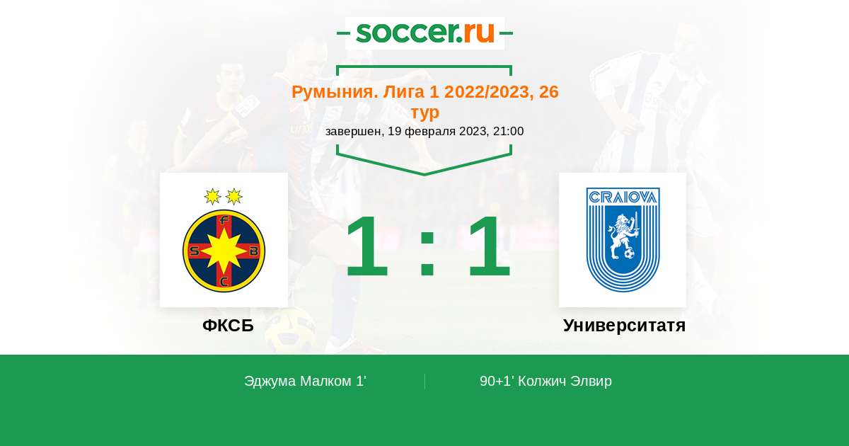 Протокол матча ФКСБ против Университатя Крайова