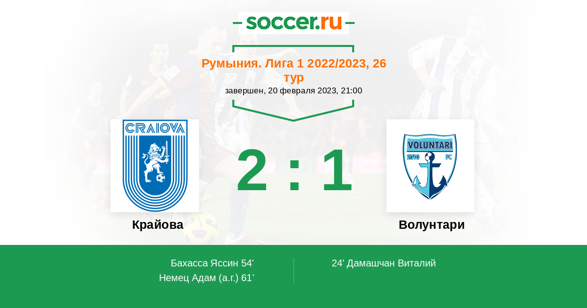 Протокол матча Крайова против Волунтари