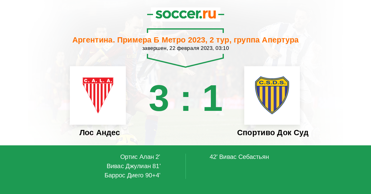 Протокол матча Лос Андес против Спортиво Док Суд