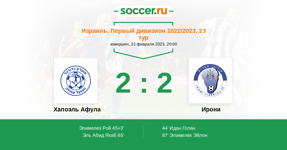 Протокол матча Хапоэль Афула против Ирони