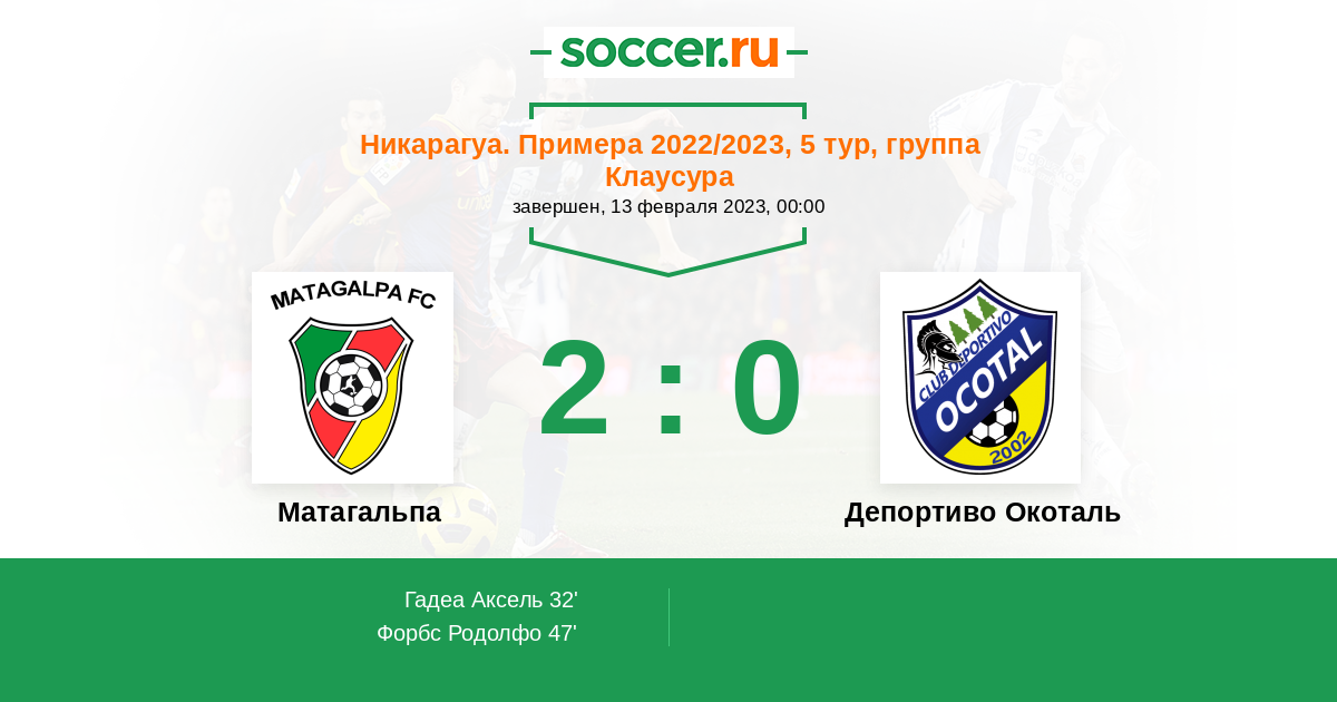 Протокол матча Матагальпа против Депортиво Окоталь