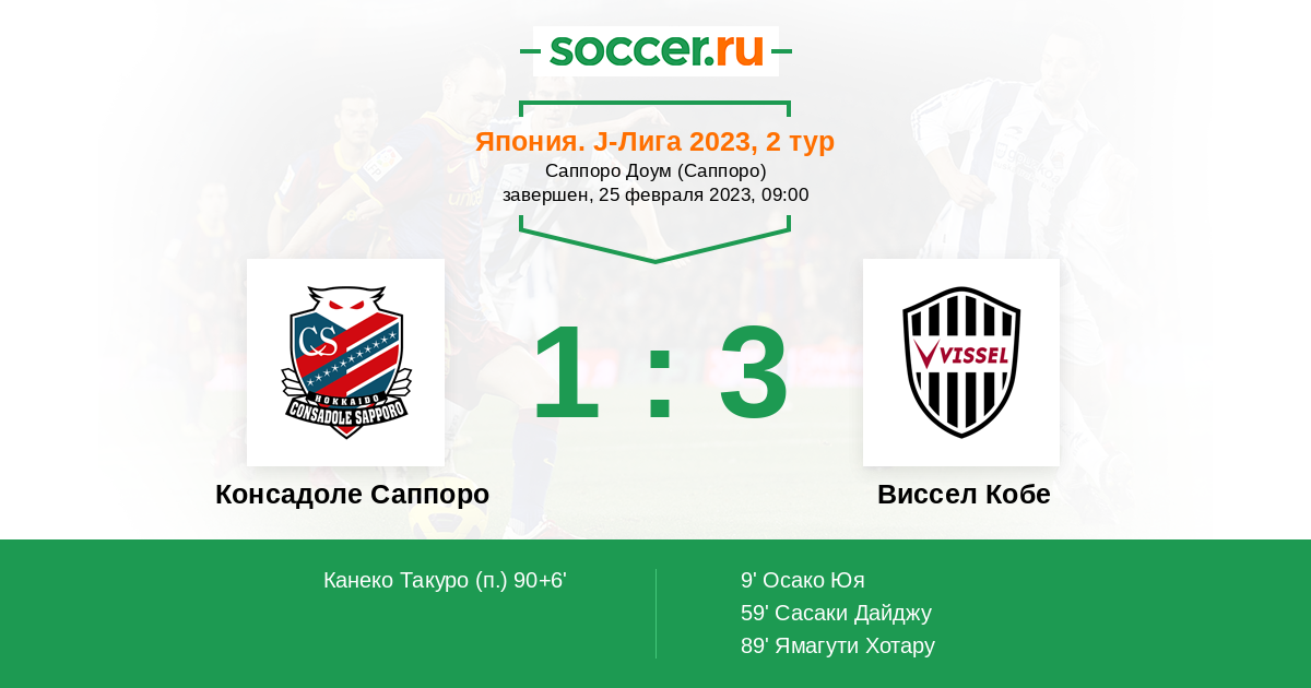 Протокол матча Консадоле Саппоро против Виссел Кобе