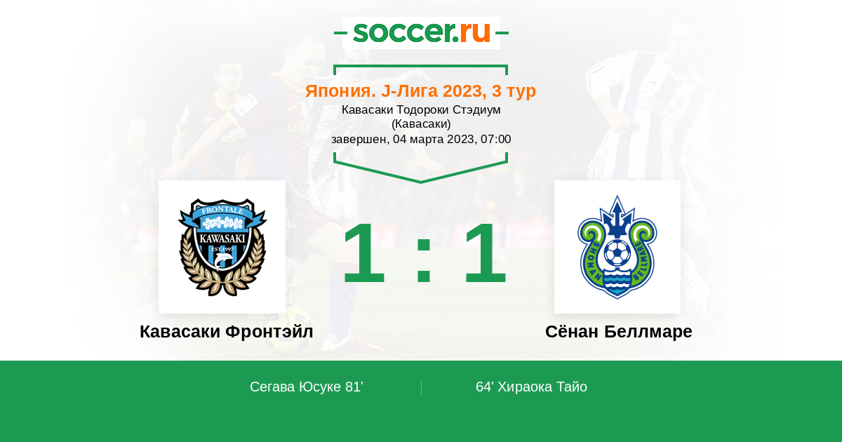 Протокол матча Кавасаки Фронтэйл против Сёнан Беллмаре