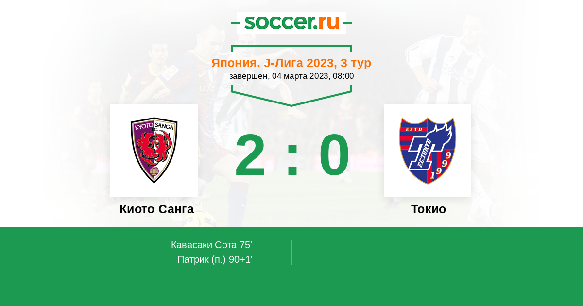Протокол матча Киото Санга против Токио