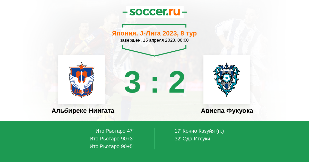 Протокол матча Альбирекс Ниигата против Ависпа Фукуока