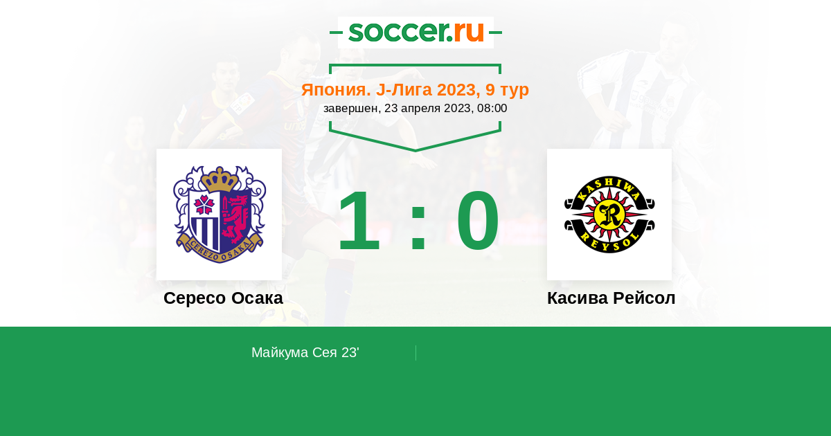Протокол матча Сересо Осака против Касива Рейсол