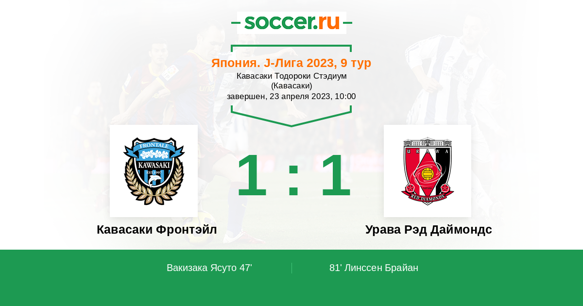 81' (1:1) Линссен Брайан (9) (Огивара Такуя (26))