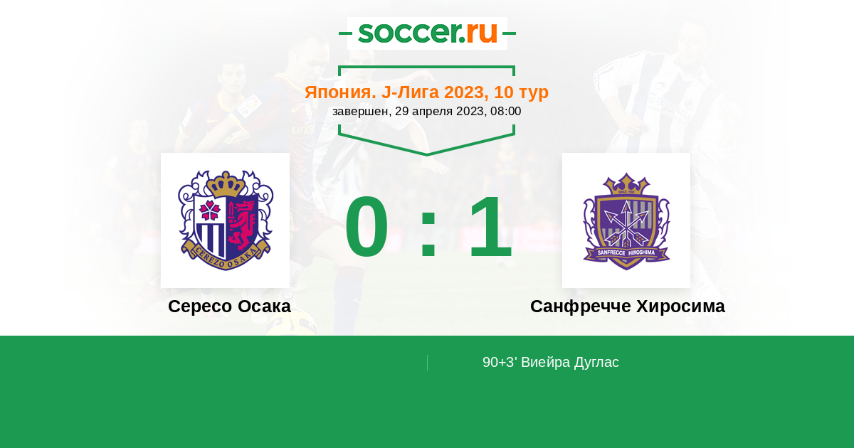 Протокол матча Сересо Осака против Санфречче Хиросима