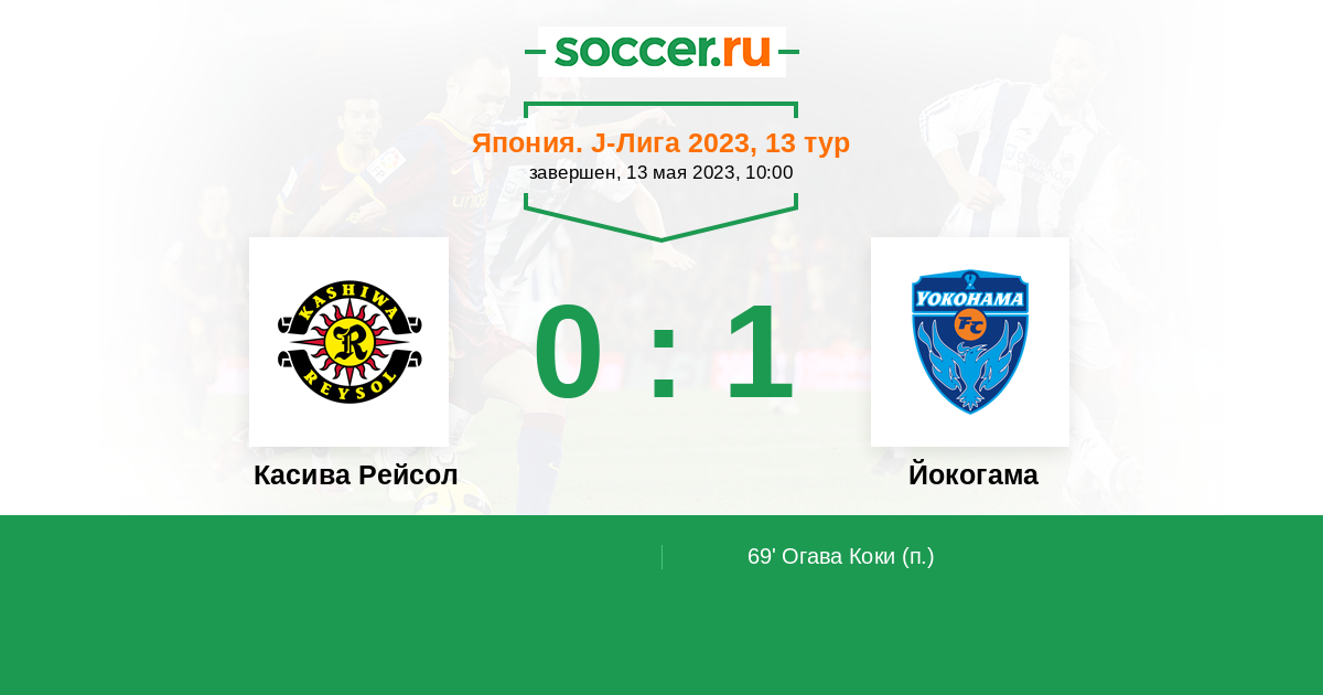 Протокол матча Касива Рейсол против Йокогама