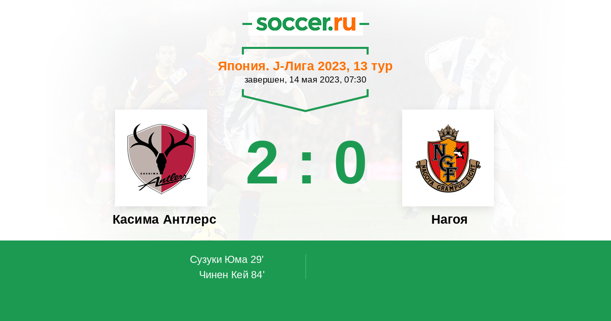 Протокол матча Касима Антлерс против Нагоя