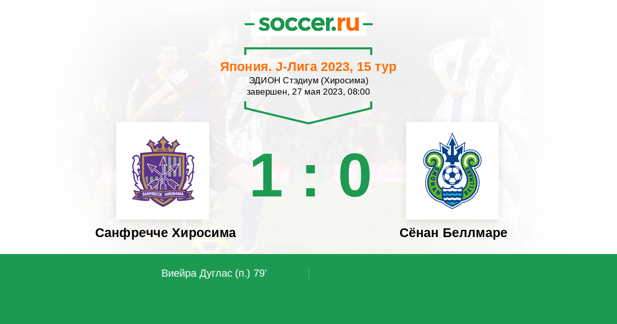 Протокол матча Санфречче Хиросима против Сёнан Беллмаре