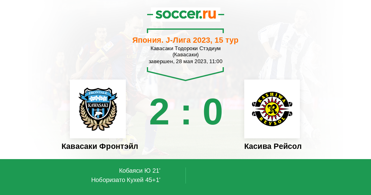 45+1' (2:0) Ноборизато Кухей (2) (Вакизака Ясуто (14))