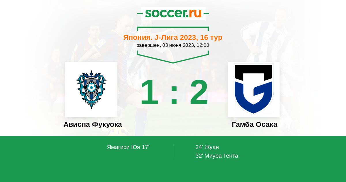 Протокол матча Ависпа Фукуока против Гамба Осака