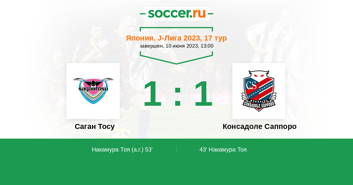 53' (1:1) Автогол Накамура Тоя (6)