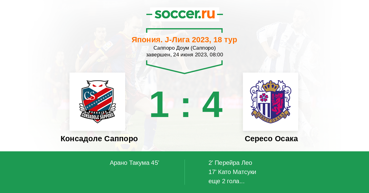 Протокол матча Консадоле Саппоро против Сересо Осака