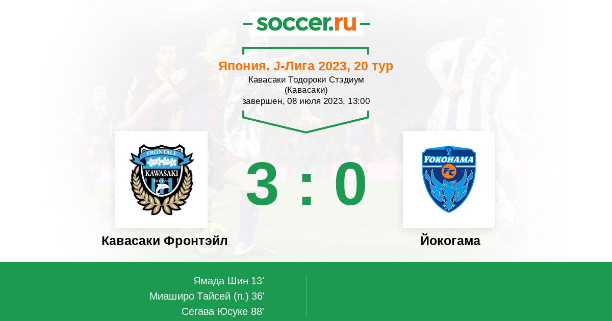 Протокол матча Кавасаки Фронтэйл против Йокогама