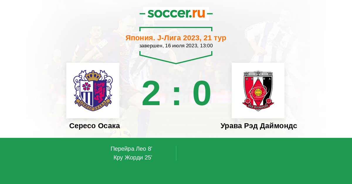 Протокол матча Сересо Осака против Урава Рэд Даймондс
