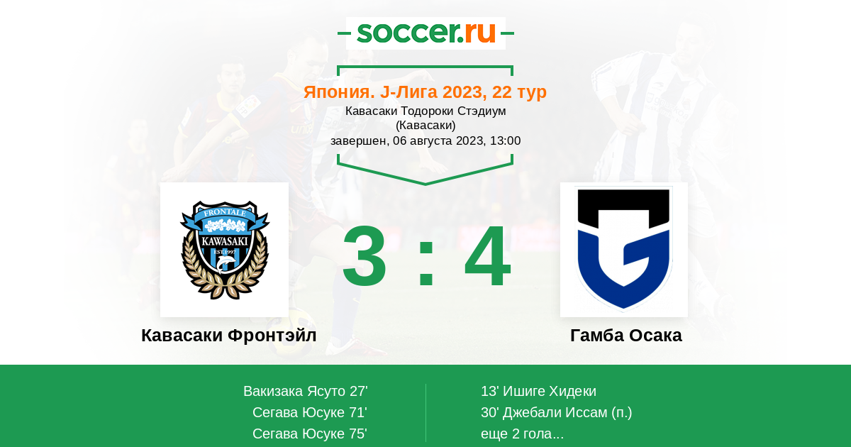 Протокол матча Кавасаки Фронтэйл против Гамба Осака