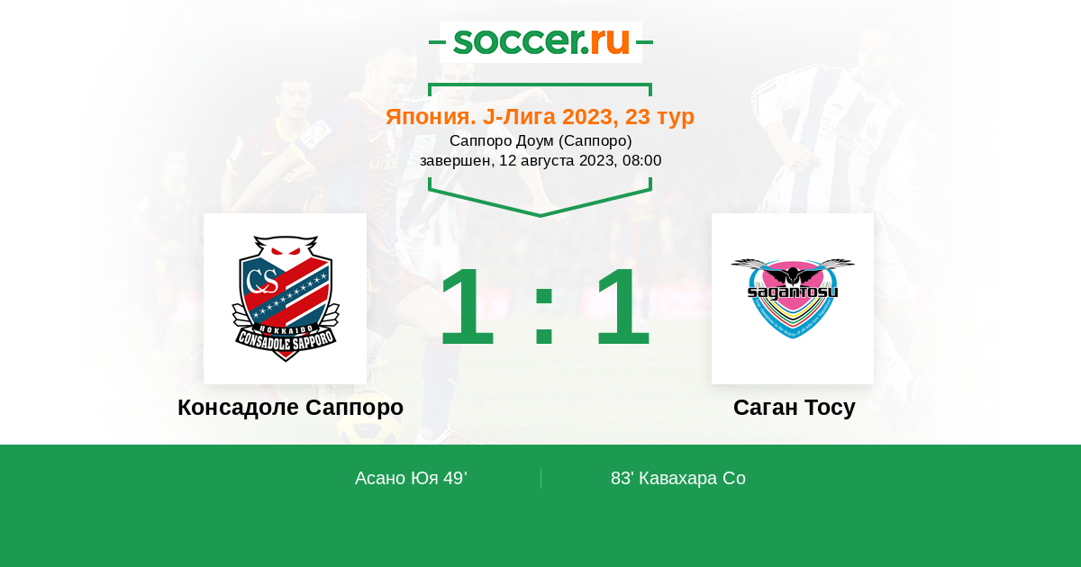 Протокол матча Консадоле Саппоро против Саган Тосу