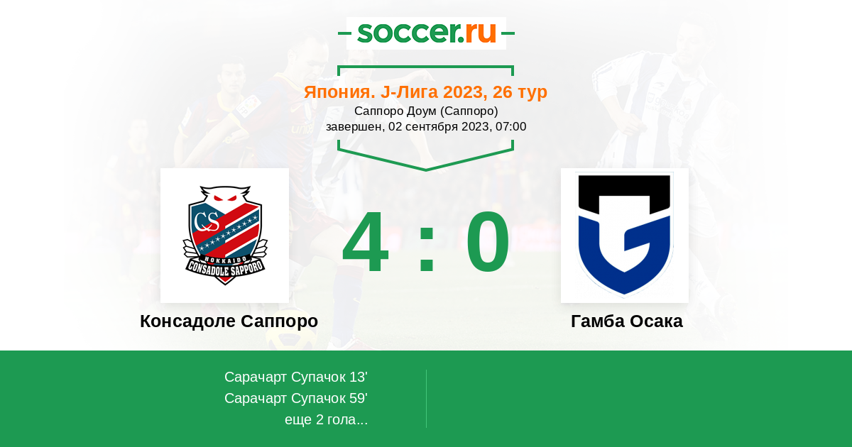 Протокол матча Консадоле Саппоро против Гамба Осака