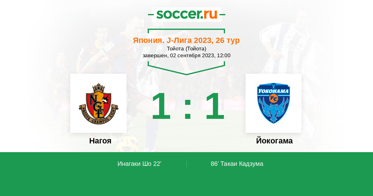 Протокол матча Нагоя против Йокогама