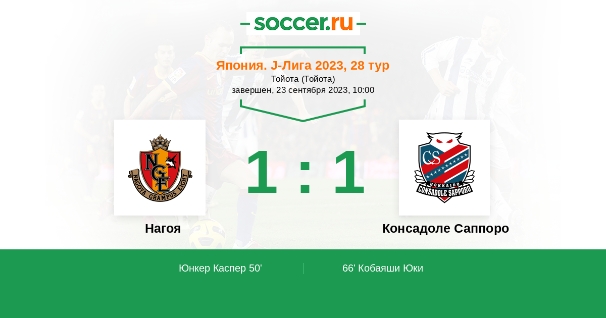 Протокол матча Нагоя против Консадоле Саппоро