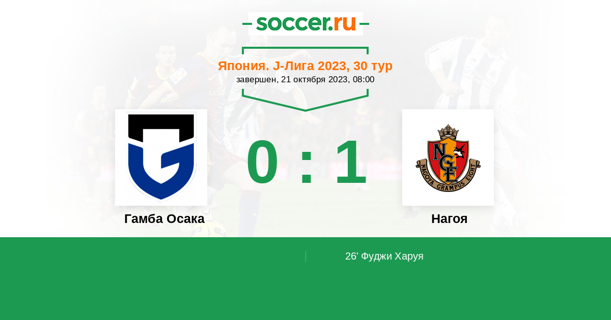 Протокол матча Гамба Осака против Нагоя