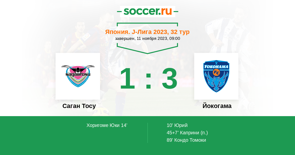Протокол матча Саган Тосу против Йокогама