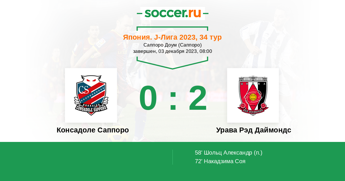 Протокол матча Консадоле Саппоро против Урава Рэд Даймондс