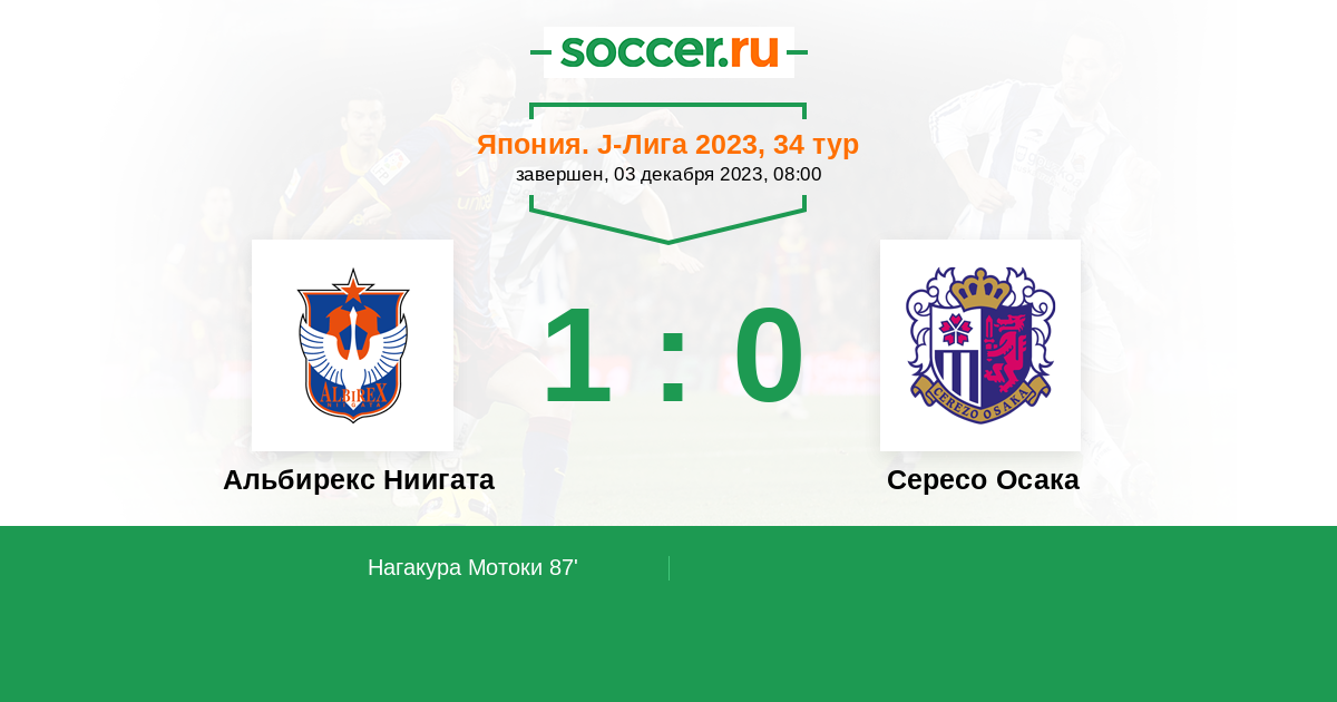 Протокол матча Альбирекс Ниигата против Сересо Осака