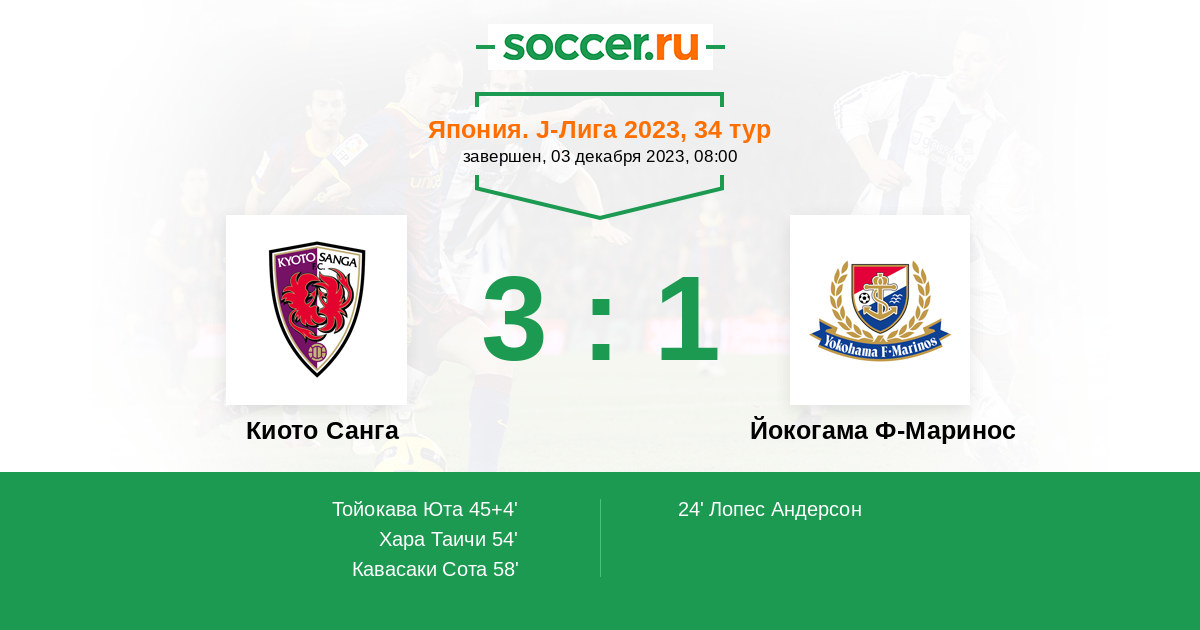 Протокол матча Киото Санга против Йокогама Ф-Маринос