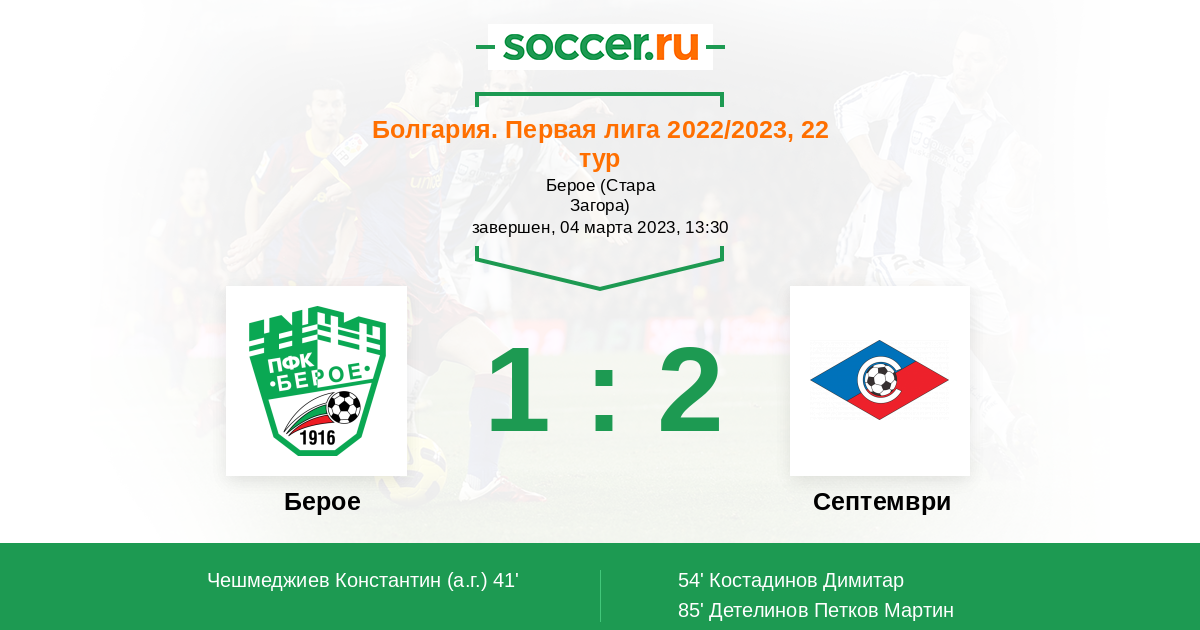 Протокол матча Берое против Септември