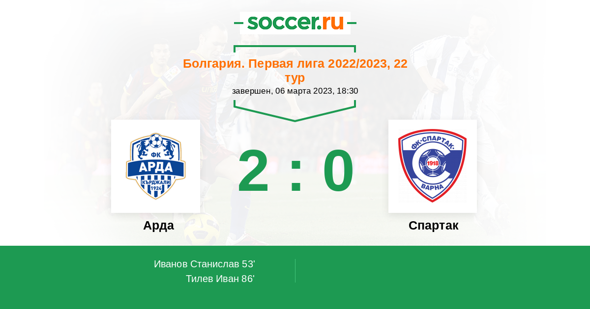 Протокол матча Арда против Спартак