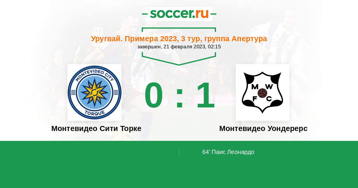 Протокол матча Монтевидео Сити Торке против Монтевидео Уондерерс
